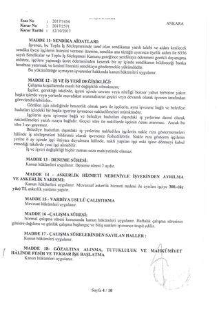 Güvenlik ve Savunma İşçileri Sendikası (GÜVENLİK-İŞ)- Bilecik Valiliği İl Kültür ve Turizm Müdürlüğü Bilecik Müzesi Müdürlüğü ve Söğüt Müzesi Müdürlüğü , İl Halk Kütüphanesi ( Silahlı- Silahsız)Özel Güvenlik Hizmet Alımı İşi-Şahin Özel Güvenlik Hiz. Tic. Ltd. Şti. arasındaki Toplu İş Sözleşmesi Görüşmeleri Yüksek Hakem Kurulunca Karara Bağlanmıştır. İhale yetki belgesi itibariyle 1 yılın altında olduğu için Toplu Sözleşme Kamu İşverenleri Sendikaları ile imzalanamamış olup, Kurum ve Şirket birlikte sorumludur. 12.10.2017 Gün ve E.2017/1454, K.2017/2571 sayılı karar ilişikte gönderilerek toplu iş sözleşmesi imzalanmıştır. Toplu iş sözleşmesi 15.01.2017 –31.12.2017 tarihleri arasında yürürlükte olacaktır. Türkiye’de özel güvenlik sektöründe ilklerin sendikası olan Güvenlik İş Sendikası olarak üyelerimiz adına imzalanan toplu iş sözleşmesi Bilecik Valiliği İl Kültür ve Turizm Müdürlüğü Bilecik Müzesi Müdürlüğü ve Söğüt Müzesi Müdürlüğü , İl Halk Kütüphanesi ( Silahlı- Silahsız)Özel Güvenlik Hizmet Alımı İşi-Şahin Özel Güvenlik Hiz. Tic. Ltd. Şti.‘de çalışan tüm üyelerimize ve özel güvenlik görevlilerine hayırlı olmasını diliyoruz. Toplu iş sözleşmesinde çocuk yardımı, bayram yardımı, ölüm yardımı, evlilik yardımı, silah tazminatı, ikramiye ve maaş ücret zammı belirlendi. Buna göre üyelerimiz… ÜCRET ZAMMI: 15.01.2017-30.06.2017 Tarihleri arası ücret zammı: İşçilerin 15.03.2017 tarihinde almakta oldukları günlük çıplak ücretlerine aynı tarihten itibaren%4 yüzde Dört oranında zam yapılmıştır. 01.07.2017-31.12.2017 Tarihleri arası ücret zammı: İşçilerin 30.06.2017 tarihinde almakta oldukları günlük çıplak ücretlerine 01.07.2017 tarihinden itibaren % 4 yüzde dört oranında zam yapılmıştır. İKRAMİYE: Toplu iş sözleşme kapsamında işçilere İkramiye olarak Mart ve Eylül aylarında 5’er günlük olmak üzere toplam 10 günlük (5*2=10), ücretleri tutarında ikramiye ödenir. YEMEK YARDIMI: İhale sözleşmesi veya şartnamede ayni veya nakdi yemek yardımı öngörülmediği takdirde, fiilen çalışılan işçilere günler için bir öğün yemek verilir. Yemek verilmediği takdirde, karar tarihinden itibaren fiilen çalışılan günler için 5 TL yemek bedeli ödenir. HASTALIK YARDIMI: Hastalık nedeni ile iş göremezliğe uğrayan işçilerin 3(üç) gün ve daha fazla istirahatli olmaları halinde Sosyal Güvenlik Kurumunca ödeme yapılmayan günlere ait ücretlerin tamamı ve eksik ödeme yapılan günlere ait ücretlerin bakiyesi işverence ödenir. İşçinin hastalık nedeniyle işe devam edemediği veya raporlu olduğu sürelere ait yılda 5 defayı geçmemek üzere SGK tarafından ödenmeyen ilk 2 günün ücreti işveren tarafından ödenir. İşçinin, iş yerinin bulunduğu mahal veya başka bir mahalle sevk suretiyle viziteye çıkması halinde iş yerinden ayrı kalacağı zamanlarda; işçiye istirahat verilmeksizin ayakta tedavisine lüzum görüldüğü taktirde geçirdiği süreler için işçi ücretli izinli sayılır. YILLIK ÜCRETLİ İZİNLER Hizmet Süresi; 1 yıldan 5 yıla kadar olanlara 16 gün 5 yıldan fazla 15 yıldan az olanlara 22 gün 15 yıl ve daha fazla olanlara 28 gün