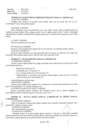 | İşçilerin Yangın, Deprem, Sel ve Benzeri Afetlerden Zarar Görmeleri Halinde | 1000 TL'YE KADAR |
