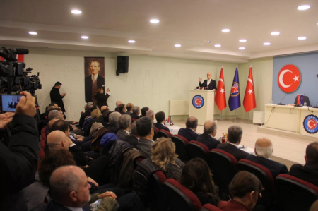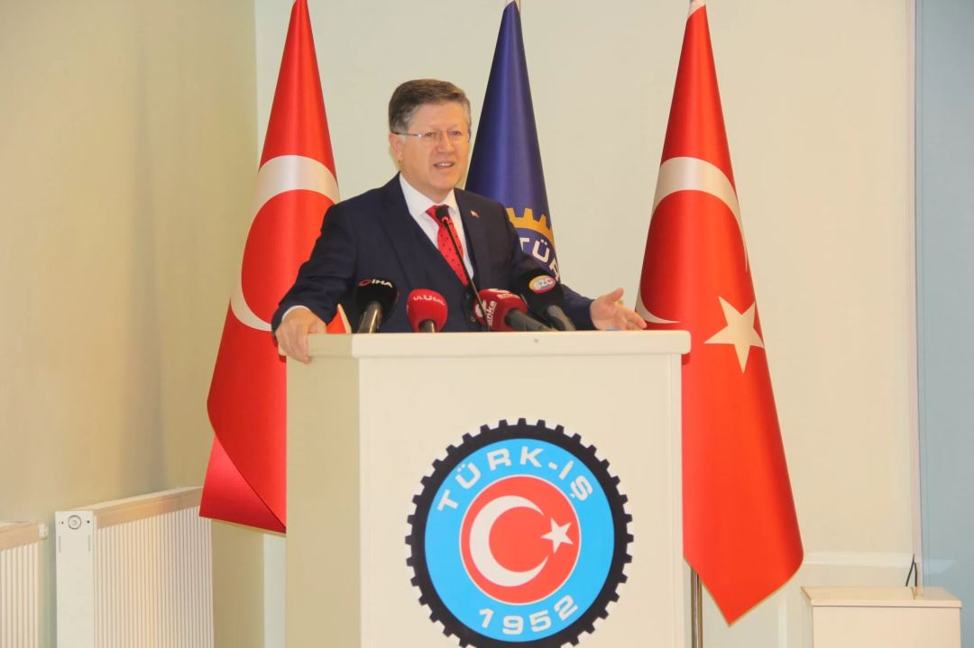 Genel Başkan ATALAY’ın konuşmasında; “Asgari Ücret tespit komisyonu toplantısına katılmama kararı aldık çünkü yapının adil olmadığını düşünüyoruz. Asgari Ücret Komisyonu 5 hükümet, 5 işveren ve 5 işçi temsilcisinden oluşuyor. Kararlar oy çokluğu ile alınıyor. Yıllardır bizim itiraz ettiğimiz zam oranı, itirazlarımıza rağmen uygulanıyor. Katılmayacağız diyerek bu konuyu kamuoyunun tartışmasına açtık. Hükümetten adil bir düzenleme talebimizi sürdürüyoruz. Yalnızca temsiliyet sayısının değişmesini değil asgari ücret belirlenirken dikkate alınan kriterlerin de değişmesini istiyoruz” dedi.