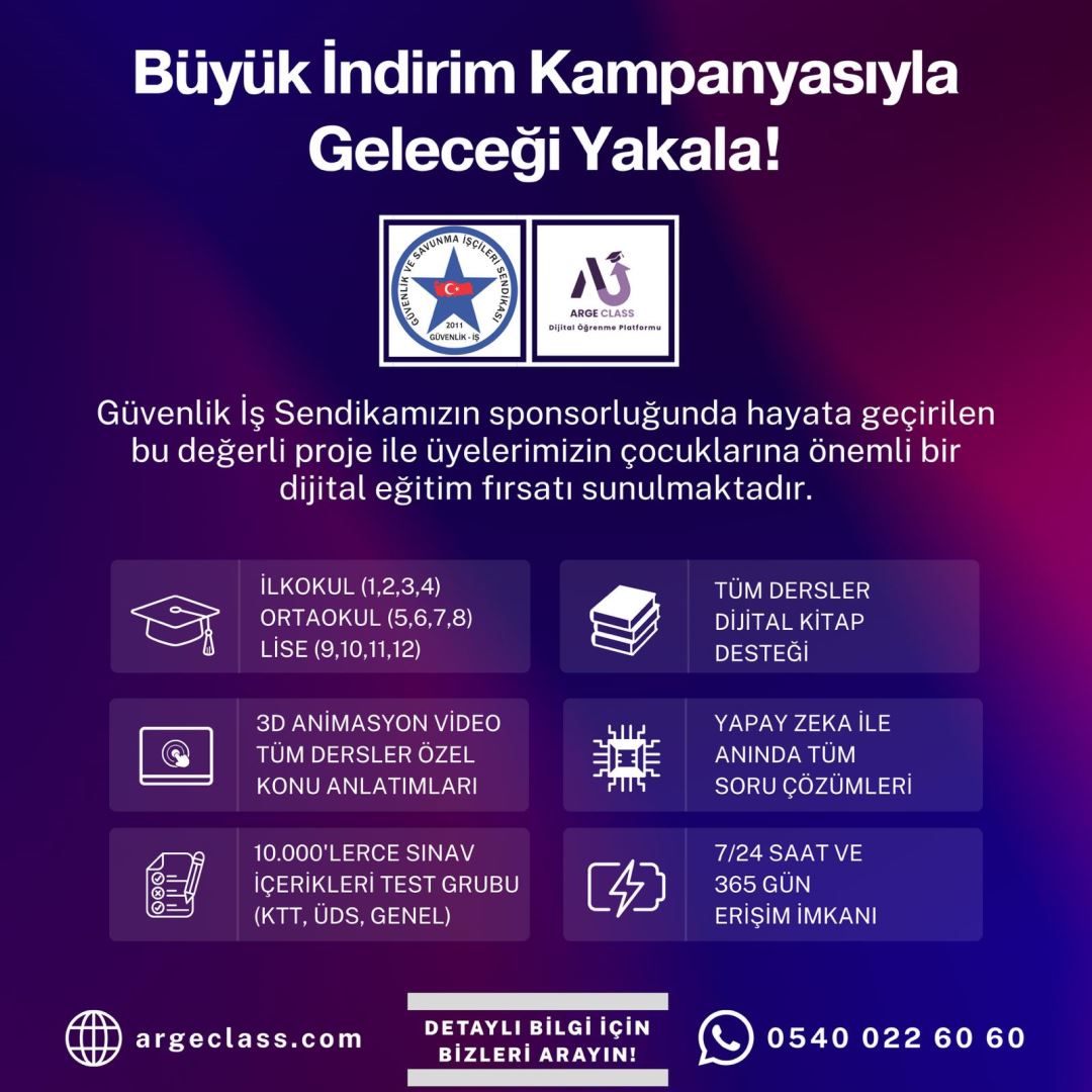 Argeclass Eğitim tarafından sağlanan WhatsApp hattı üzerinden yürütülecektir.