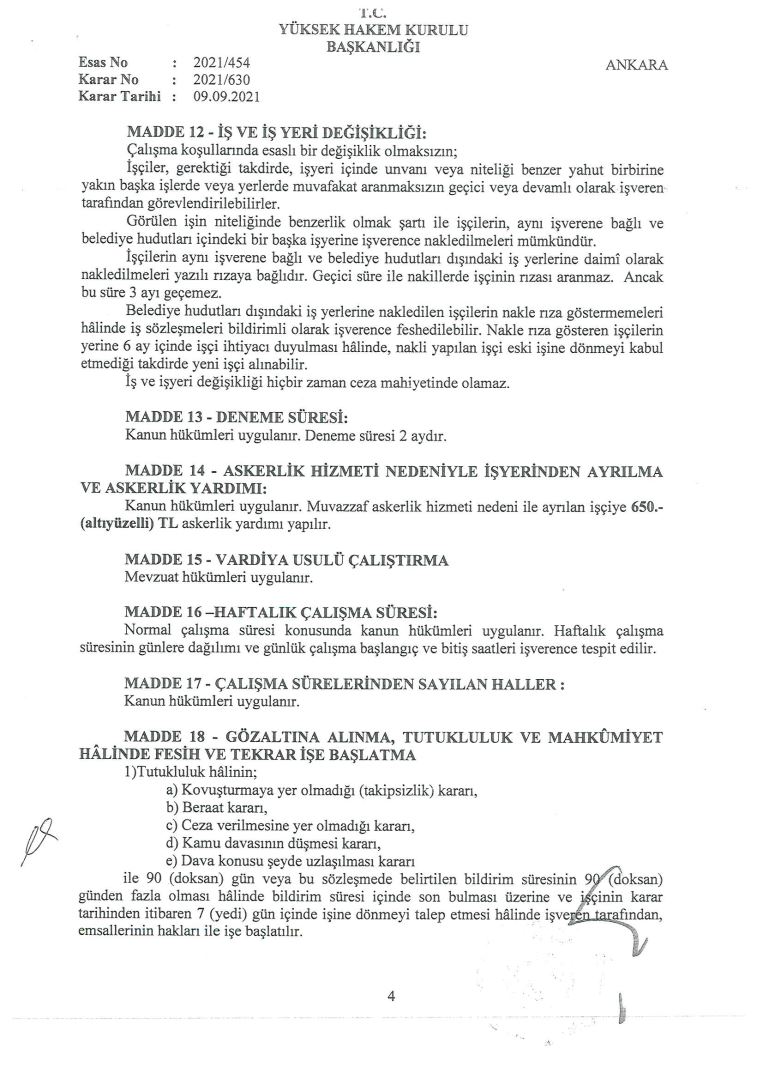 Akdeniz Yatırım Holding A.Ş. (Döşemealtı Belediyesi) tarafından yetkilendirilen TÜHİS-Türk Ağır Sanayii ve Hizmet Sektörü Kamu İşverenleri Sendikası ile Güvenlik ve Savunma İşçileri Sendikası (GÜVENLİK-İŞ) – arasındaki Toplu İş Sözleşmesi Görüşmeleri Yüksek Hakem Kurulunca Karara Bağlanmıştır.