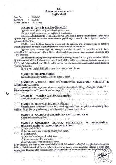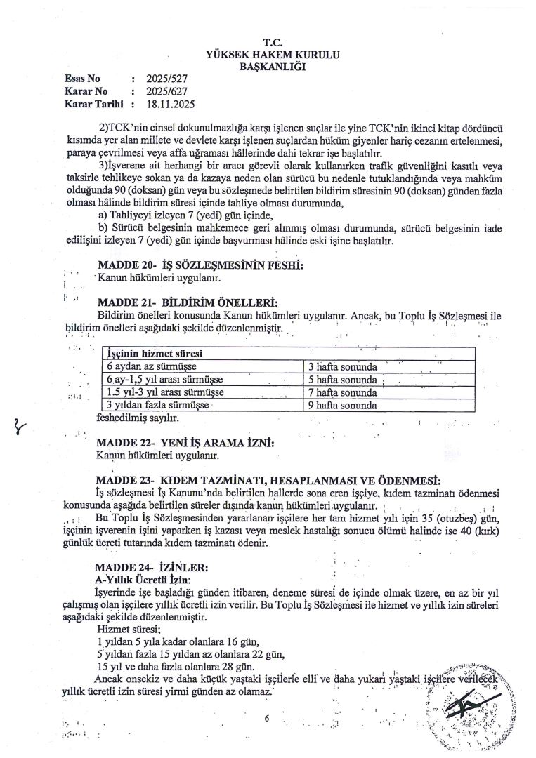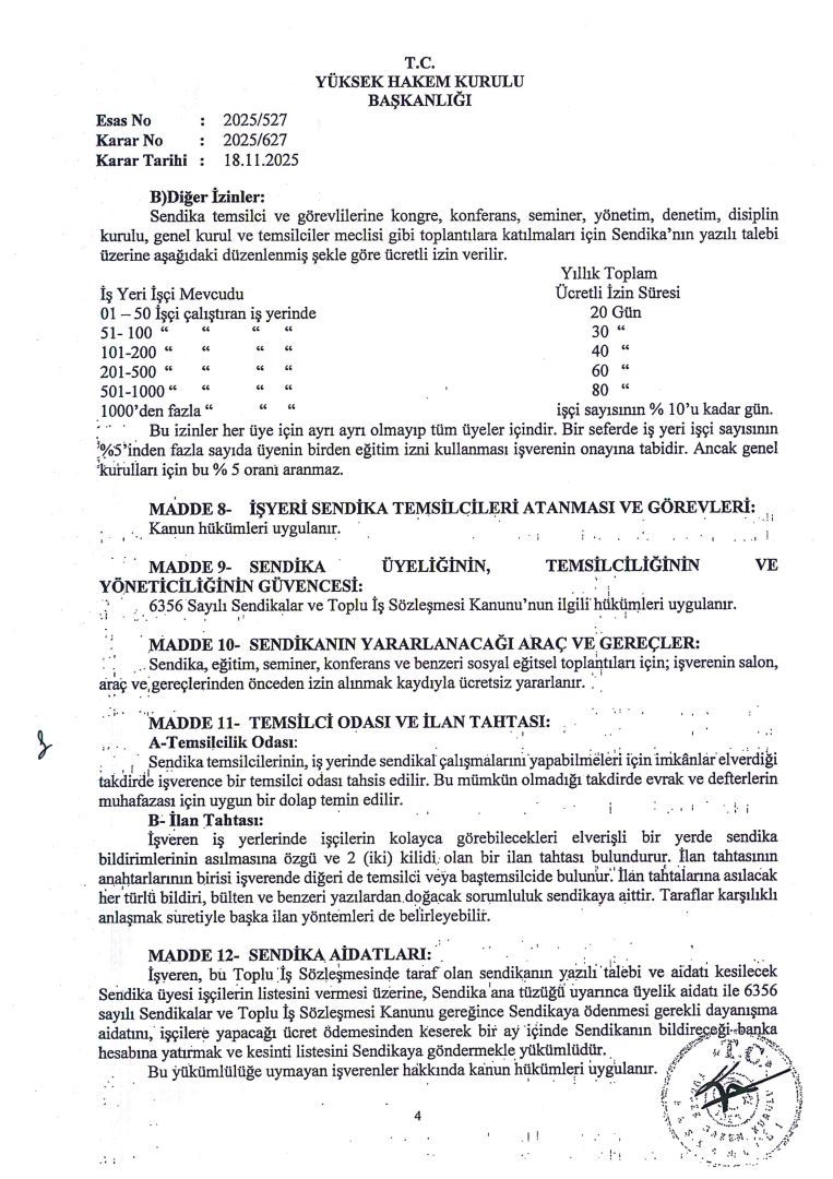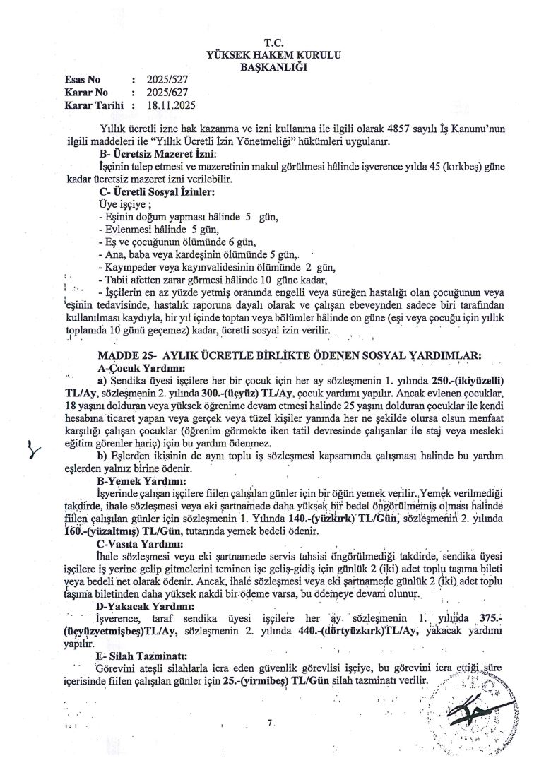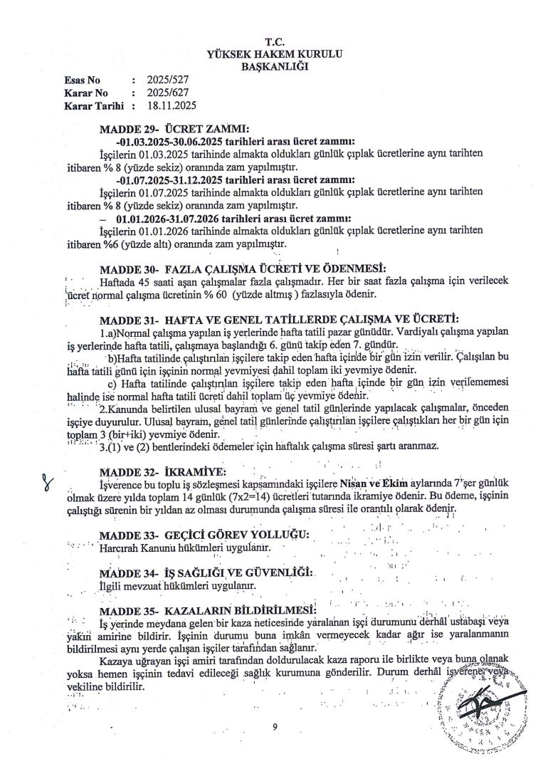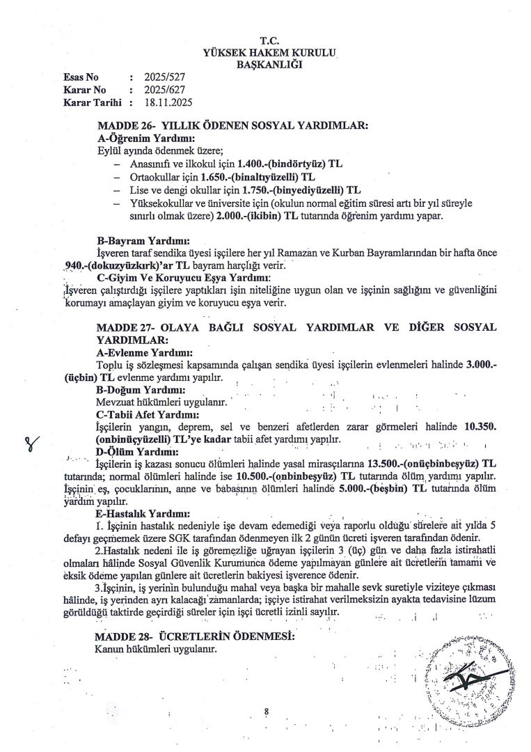 Strong Özel Güv. ve Kor. Hiz. Ltd. Şti. (EÜAŞ Genel Müdürlüğü Antalya ve Yöresi HES İşletme Müdürlüğüne bağlı Kepez 1 ve Kepez 2 HES İşletme Müdürlüğü) ile tarafından yetkilendirilen TÜHİS-Türk Ağır Sanayii ve Hizmet Sektörü Kamu İşverenleri Sendikası ile Güvenlik ve Savunma İşçileri Sendikası (GÜVENLİK-İŞ) arasındaki Toplu İş Sözleşmesi Görüşmeleri Yüksek Hakem Kurulunca Karara Bağlanmıştır.