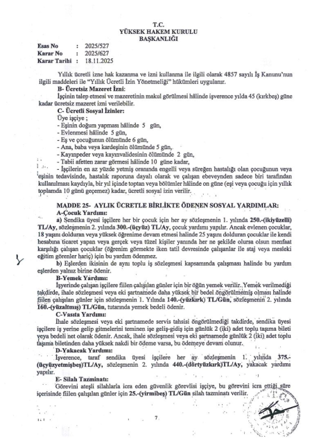| İşçinin Ana, Baba, Eş ve Çocuklarının Ölümü Halinde | 5.000 TL |