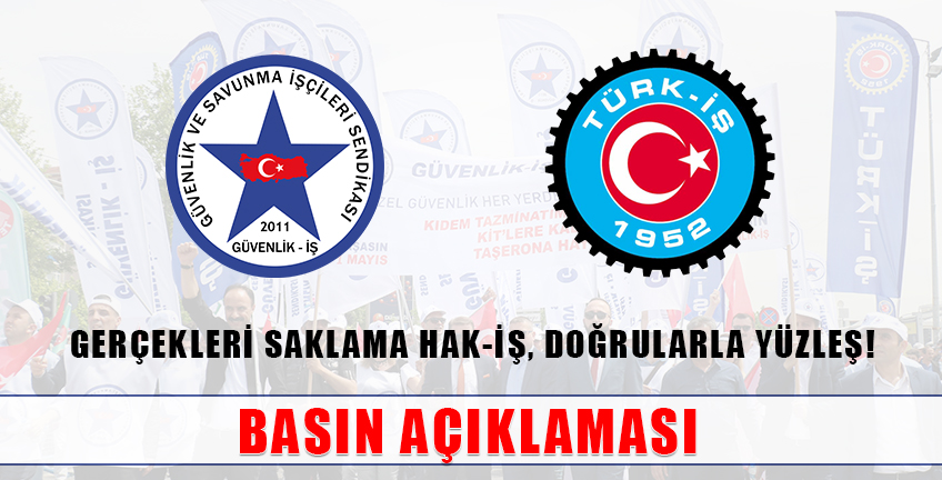 TÜRK-İŞ'e bağlı Güvenlik-İş Sendikası olarak şunu açık yüreklilikle haykırıyoruz…