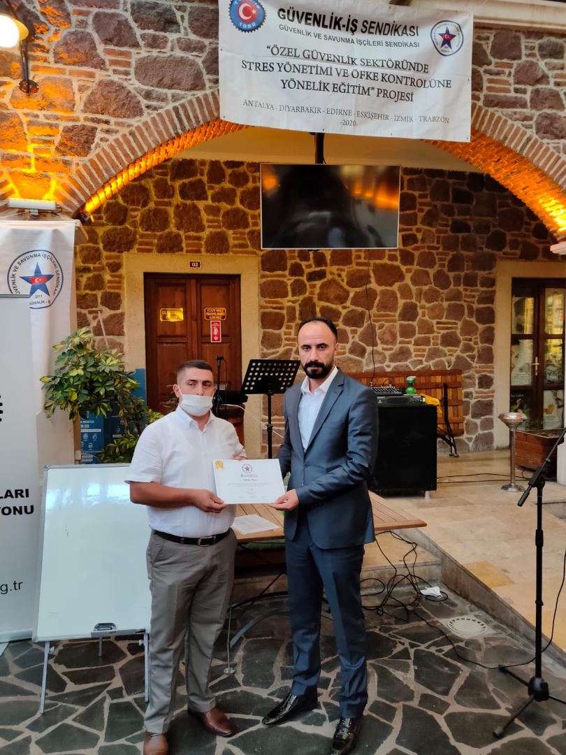 Güvenlik-İş Sendikamız tarafından 26 Eylül 2020'de düzenlenen ‘’Özel Güvenlik Sektöründe Stres Yönetimi ve Öfke Kontrolüne Yönelik Eğitim'' Projesinin dördüncüsü İzmir'de gerçekleştirildi.