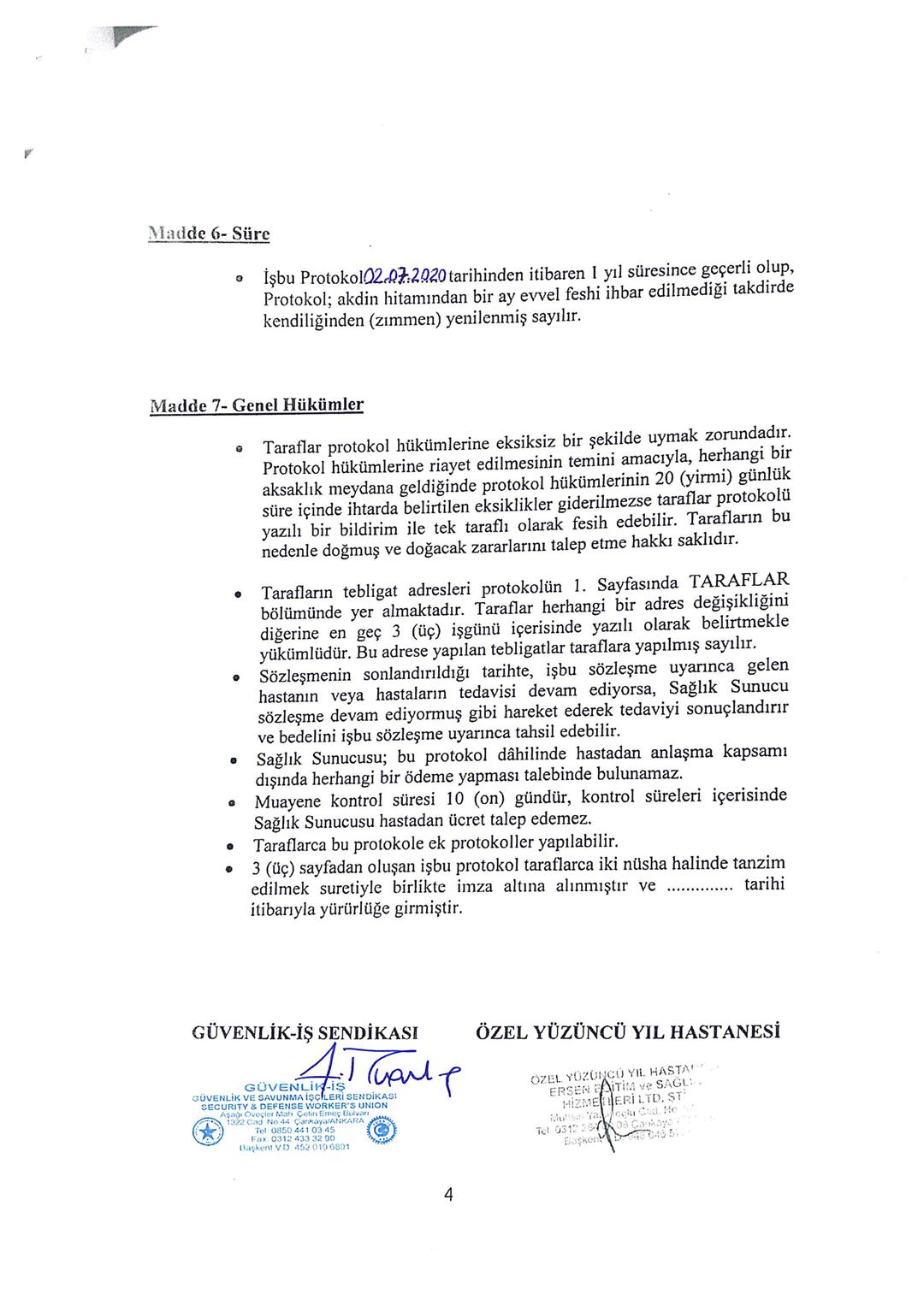 Güvenlik-İş Sendikamız İle Özel Yüzüncü Yıl Hastanesi arasında kurumsal anlaşma imzalanmıştır.