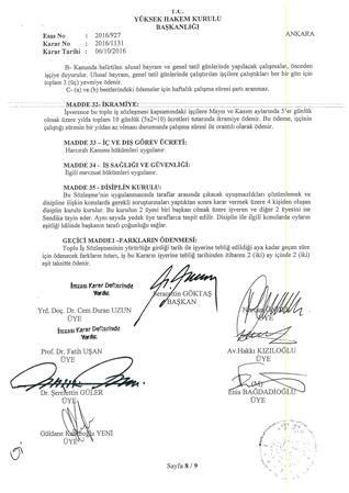Güvenlik ve Savunma İşçileri Sendikası (GÜVENLİK-İŞ)-Serdivan Belediye Başkanlığı Özel Güvenlik Hizmet Alım İşi-Zorlu Özel Güvenlik ve Kor. Hiz. San. ve Tic. Ltd. Şti. arasındaki Toplu İş Sözleşme Görüşmeleri Yüksek Hakem Kurulunca Karara Bağlanmıştır. İhale 1 yılın altında olduğu için Toplu Sözleşme Kamu İşverenleri Sendikaları ile imzalanamamış olup, Kurum ve Şirket birlikte sorumludur. 06.10.2016 Gün ve E.2016/927, K.2016/1131 sayılı karar ilişikte gönderilerek toplu iş sözleşmesi imzalanmıştır. Toplu iş sözleşmesi 01.04.2016 – 31.12.2016 tarihleri arasında yürürlükte olacaktır. Türkiye’de özel güvenlik sektöründe ilklerin sendikası olan Güvenlik İş Sendikası olarak üyelerimiz adına imzalanan toplu iş sözleşmesi Serdivan Belediye Başkanlığı Özel Güvenlik Hizmet Alım İşi-Zorlu Özel Güvenlik ve Kor. Hiz. San. ve Tic. Ltd. Şti.’de çalışan tüm üyelerimize ve özel güvenlik görevlilerine hayırlı olmasını diliyoruz. Toplu iş sözleşmesinde çocuk yardımı, bayram yardımı, ölüm yardımı, evlilik yardımı, silah tazminatı, ikramiye ve maaş ücret zammı belirlendi. Buna göre üyelerimiz… ÜCRET ZAMMI: 01.04.2016-31.12.2016 Tarihleri arası ücret zammı: İşçilerin 01.04.2016 tarihinde almakta oldukları günlük çıplak ücretlerine aynı tarihten itibaren % 1 yüzde bir oranında zam yapılmıştır. İKRAMİYE: Toplu iş sözleşme kapsamında işçilere İkramiye olarak Mayıs ve Kasım aylarında 5’er günlük olmak üzere toplam 10 günlük (5*2=10), ücretleri tutarında ikramiye ödenir. YEMEK YARDIMI: İhale sözleşmesi veya şartnamesinde yemek yardımı öngörülmediği takdirde, fiilen çalışılan günler için bir öğün yemek verilir. Yemek verilmediği takdirde, karar tarihinden itibaren fiilen çalışılan günler için 5 TL yemek bedeli ödenir. HASTALIK YARDIMI: Hastalık nedeni ile iş göremezliğe uğrayan işçilerin 3(üç) gün ve daha fazla istirahatli olmaları halinde Sosyal Güvenlik Kurumunca ödeme yapılmayan günlere ait ücretlerin tamamı ve eksik ödeme yapılan günlere ait ücretlerin bakiyesi işverence ödenir. İşçinin hastalık nedeniyle işe devam edemediği veya raporlu olduğu sürelere ait yılda 5 defayı geçmemek üzere SGK tarafından ödenmeyen ilk 2 günün ücreti işveren tarafından ödenir. İşçinin, iş yerinin bulunduğu mahal veya başka bir mahalle sevk suretiyle viziteye çıkması halinde iş yerinden ayrı kalacağı zamanlarda; işçiye istirahat verilmeksizin ayakta tedavisine lüzum görüldüğü taktirde geçirdiği süreler için işçi ücretli izinli sayılır. YILLIK ÜCRETLİ İZİNLER Hizmet Süresi; 1 yıldan 5 yıla kadar olanlara 16 gün 5 yıldan fazla 15 yıldan az olanlara 22 gün 15 yıl ve daha fazla olanlara 28 gün
