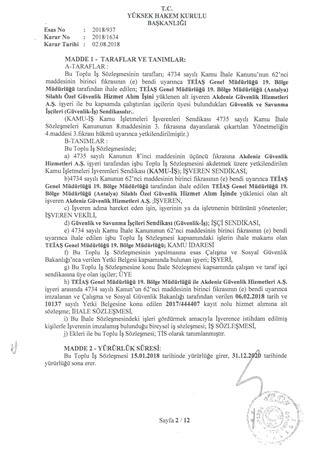 Akdeniz Güvenlik Hizmetleri A.Ş. (TEİAŞ Genel Müdürlüğü (ANTALYA) Silahlı Özel Güvenlik Hizmet Alımı İşi) adına KAMU-İŞ Kamu İşletmeleri İşverenleri Sendikası ile Güvenlik ve Savunma İşçileri Sendikası (GÜVENLİK-İŞ) – arasındaki Toplu İş Sözleşmesi Görüşmeleri Yüksek Hakem Kurulunca Karara Bağlanmıştır.