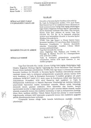 Güvenlik ve Savunma İşçileri Sendikası (GÜVENLİK-İŞ)-Ankara Valiliği İl Kültür Turizm Müdürlüğü Özel Güvenlik Hizmet Alımı İşi-Vadi Özel Güvenlik Hiz. Ltd. Şti. arasındaki Toplu İş Sözleşmesi Görüşmeleri Yüksek Hakem Kurulunca Karara Bağlanmıştır.