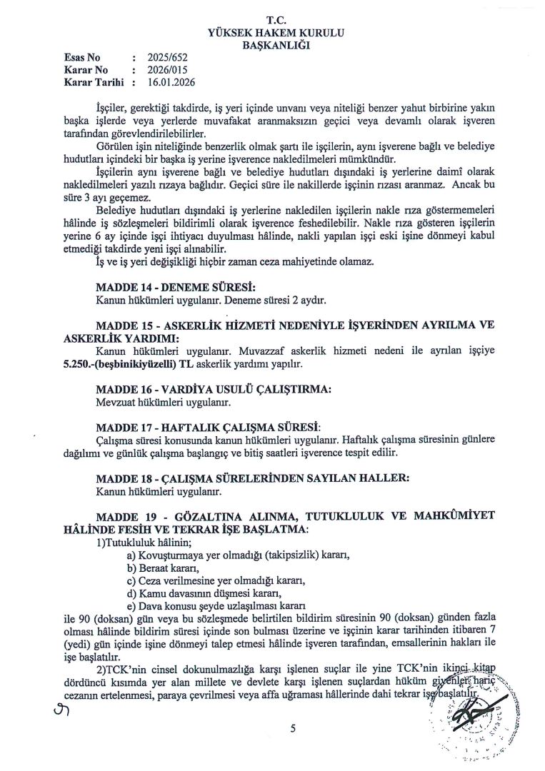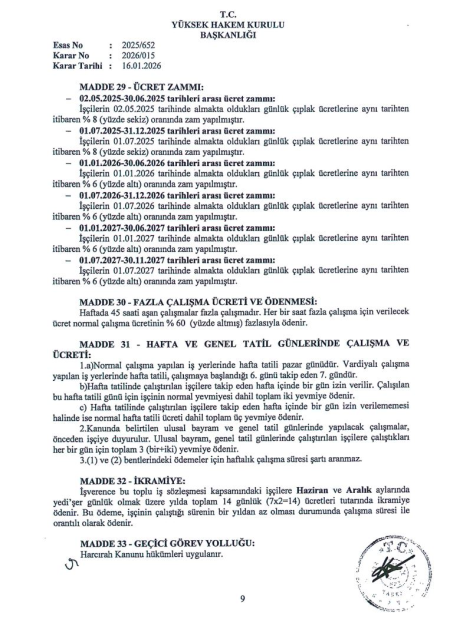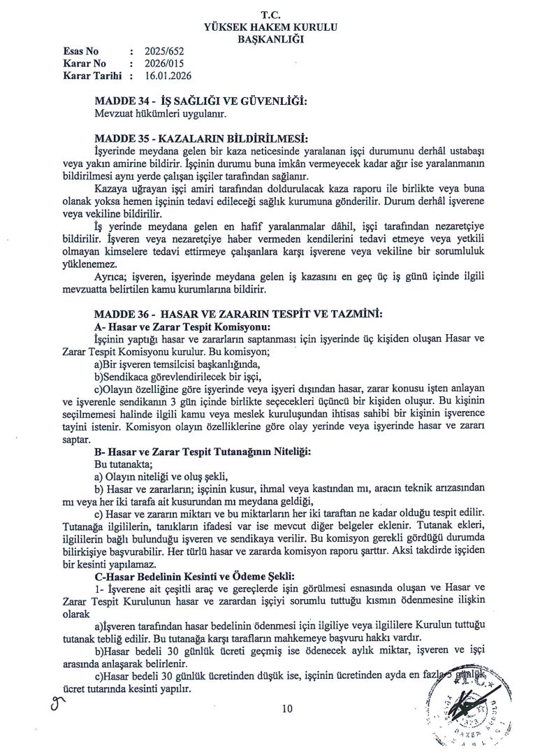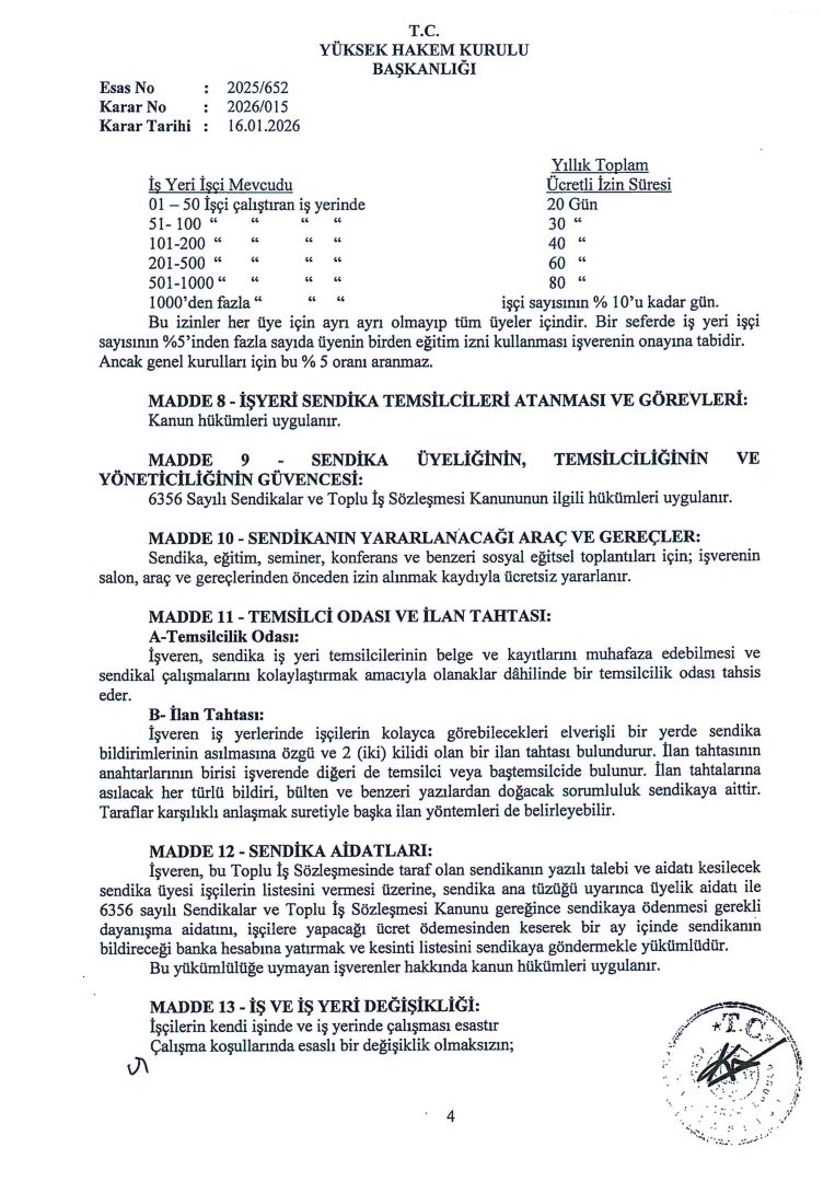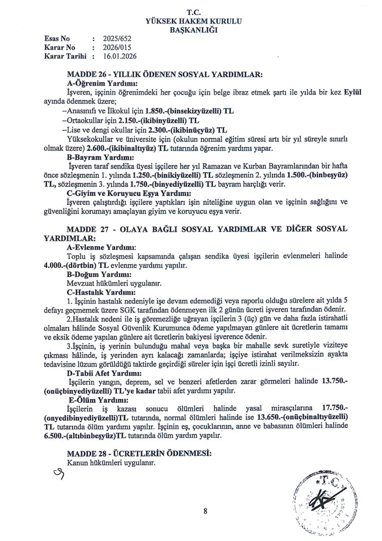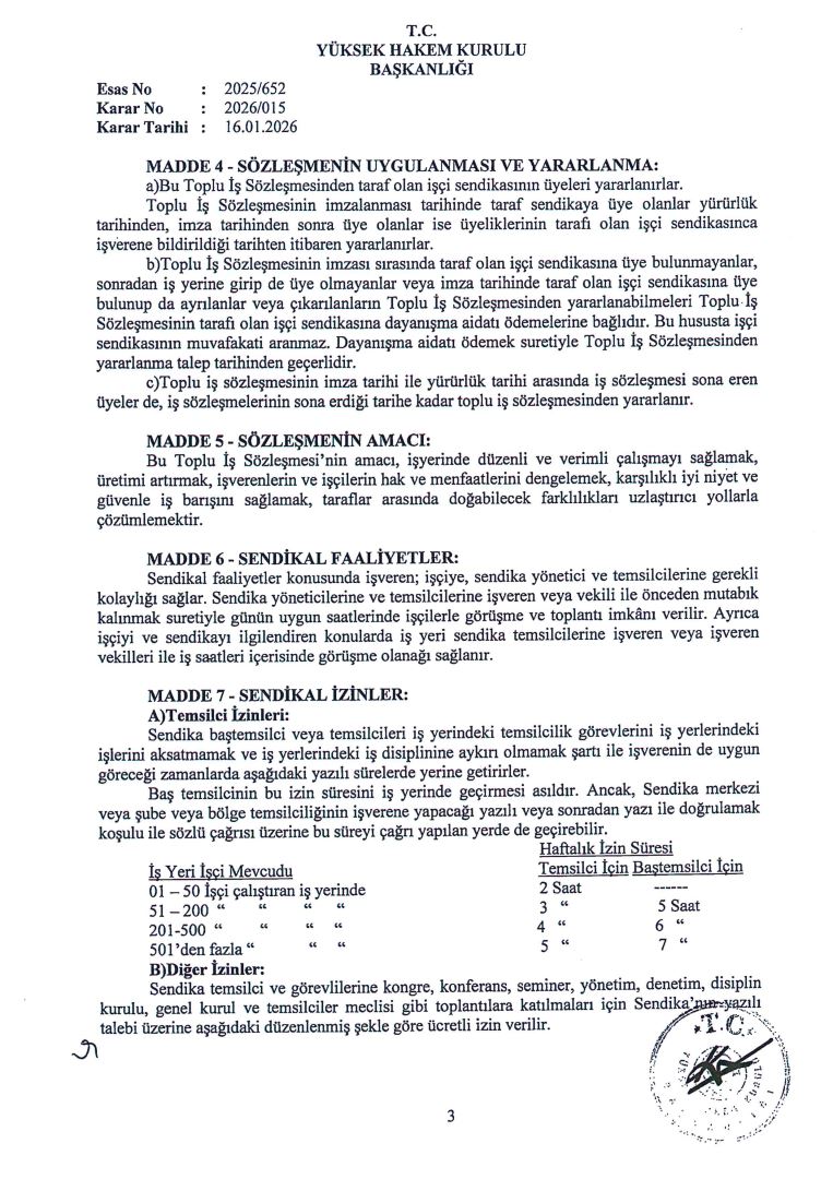 SAV Özel Güvenlik Koruma ve Eğitim Hiz. Ltd. Şti. (Türkiye Şeker Fabrikaları A.Ş. Kars Şeker Fabrikası) ile tarafından yetkilendirilen TÜHİS-Türk Ağır Sanayii ve Hizmet Sektörü Kamu İşverenleri Sendikası ile Güvenlik ve Savunma İşçileri Sendikası (GÜVENLİK-İŞ) arasındaki Toplu İş Sözleşmesi Görüşmeleri Yüksek Hakem Kurulunca Karara Bağlanmıştır.