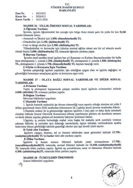 | İşçinin Ana, Baba, Eş ve Çocuklarının Ölümü Halinde | 6.500 TL |